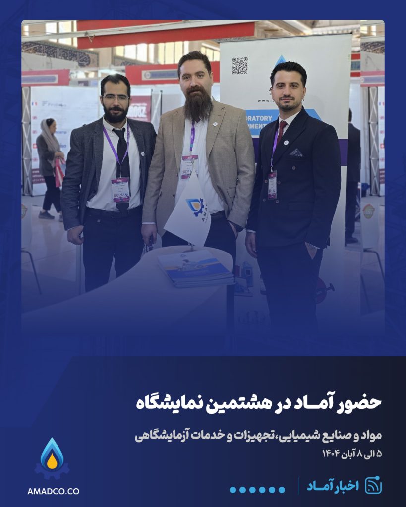 هشتمین نمایشگاه مواد و صنایع شیمیایی،تجهیزات و خدمات آزمایشگاهی، 5 و 8 آبان ماه 1404 در محل مصلی امام خمینی (ره) تهران و با حضور شرکتهای معتبر داخی و خارجی برگزار گردیده است . گزارش تصویری حضور اماد در روز اول این نمایشگاه به شما همراهان تقدیم می گردد.